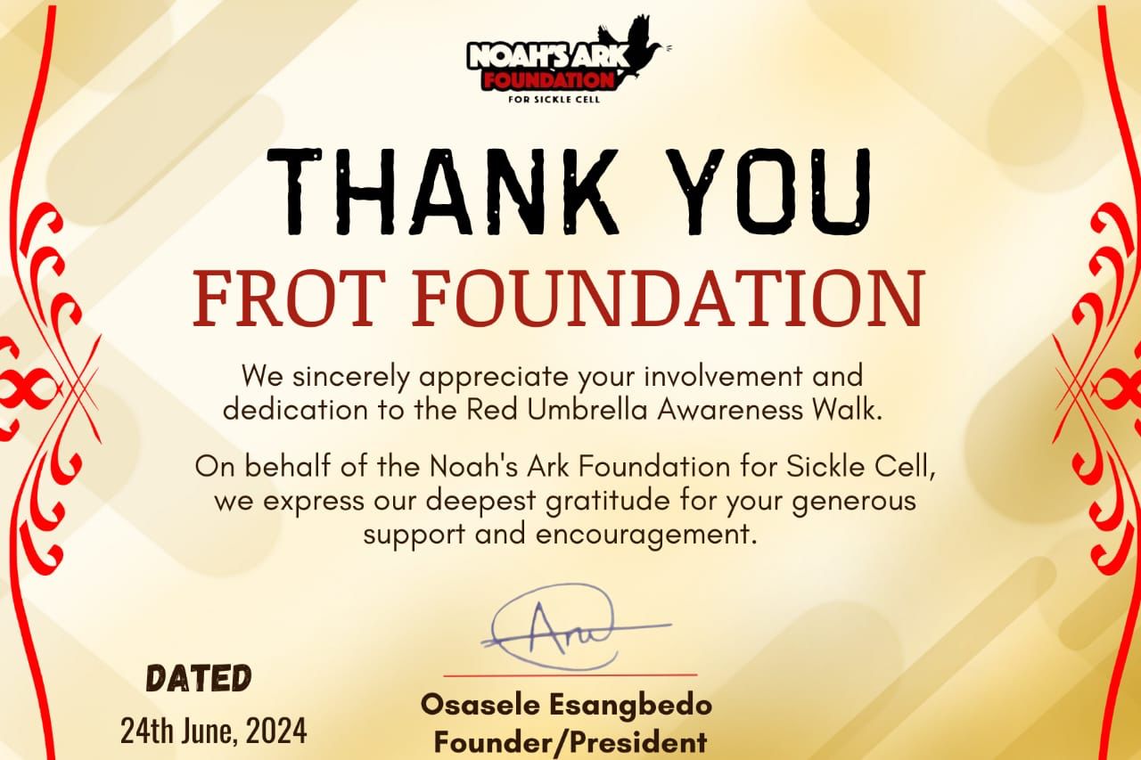 Noah Ark Nigeria: Dedicated to creating awareness on sickle cell anaemia and supporting sickle cell carriers and their families.